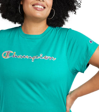 Camiseta feminina Champion com logotipo, verde, tamanho 3X