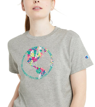 Camiseta Champion Classic Feminina Manga Curta Cinza Tamanho Grande