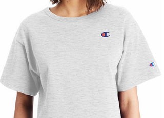 Camiseta curta Champion Heritage feminina cinza tamanho grande