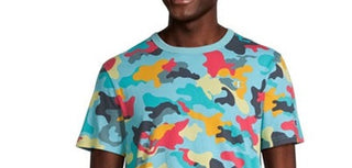 Camiseta masculina Champion com estampa camuflada bordada e gola redonda, manga curta, azul, tamanho grande