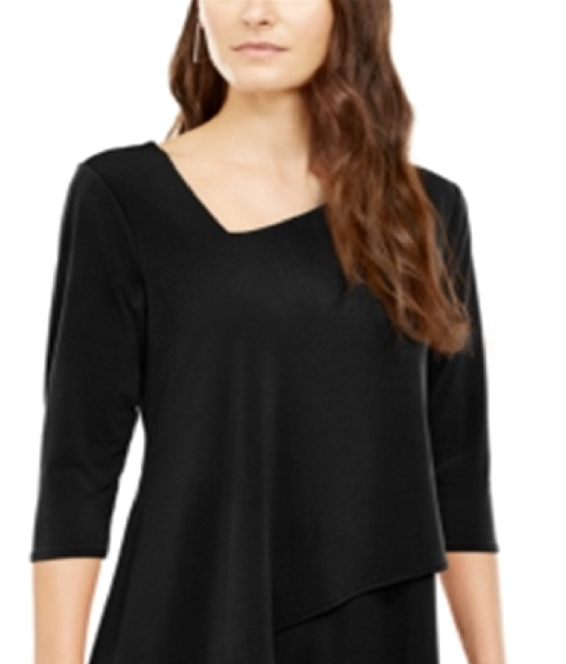 Top feminino Alfani com bainha assimétrica e envelope, preto, tamanho pequeno GG