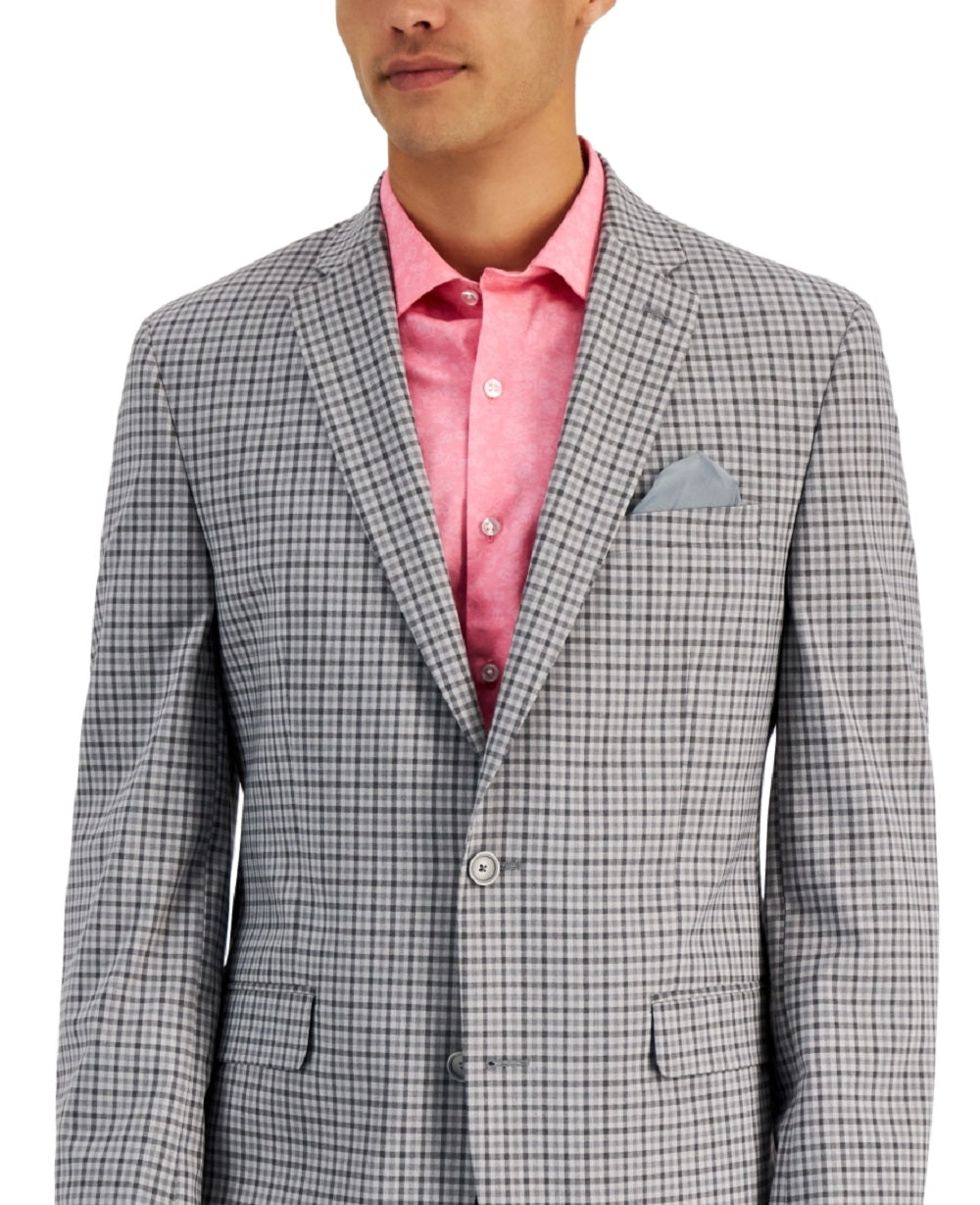Crie um visual elegante e moderno no trabalho ou em ambientes mais elegantes com a padronagem sofisticada e o corte sob medida destes blazers da Bar III. Corte justo nos ombros, peito e cintura, com cavas mais altas e mangas mais finas. Altura recomendada: Curto (P) = 1,70 m ou menos; Regular (R) = 1,80 m-1,80 m; Longo (G) = 1,80 m ou mais. Lapela entalhada; gola de dois botões. Punhos decorativos com quatro botões.