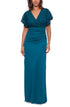 Um tom rico em duas texturas realça o vestido de cintura império da Betsy & Adam, com corpete de renda sobre saia franzida. Seu toque formal é ideal para a mãe, a noiva ou o noivo. | Comprimento aproximado de 61 cm, do ombro à bainha. O comprimento é baseado no tamanho 4 e varia em aproximadamente 1/4 entre os tamanhos. | Vestido formal longo | Renda; Textura delicada e leve | Decote em V sobrepeliz; Silhueta do vestido | Zíper central nas costas | Mangas curtas esvoaçantes