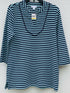 Charter Club Blusa de malha listrada feminina com decote dividido e manga 3/4, azul, tamanho médio
