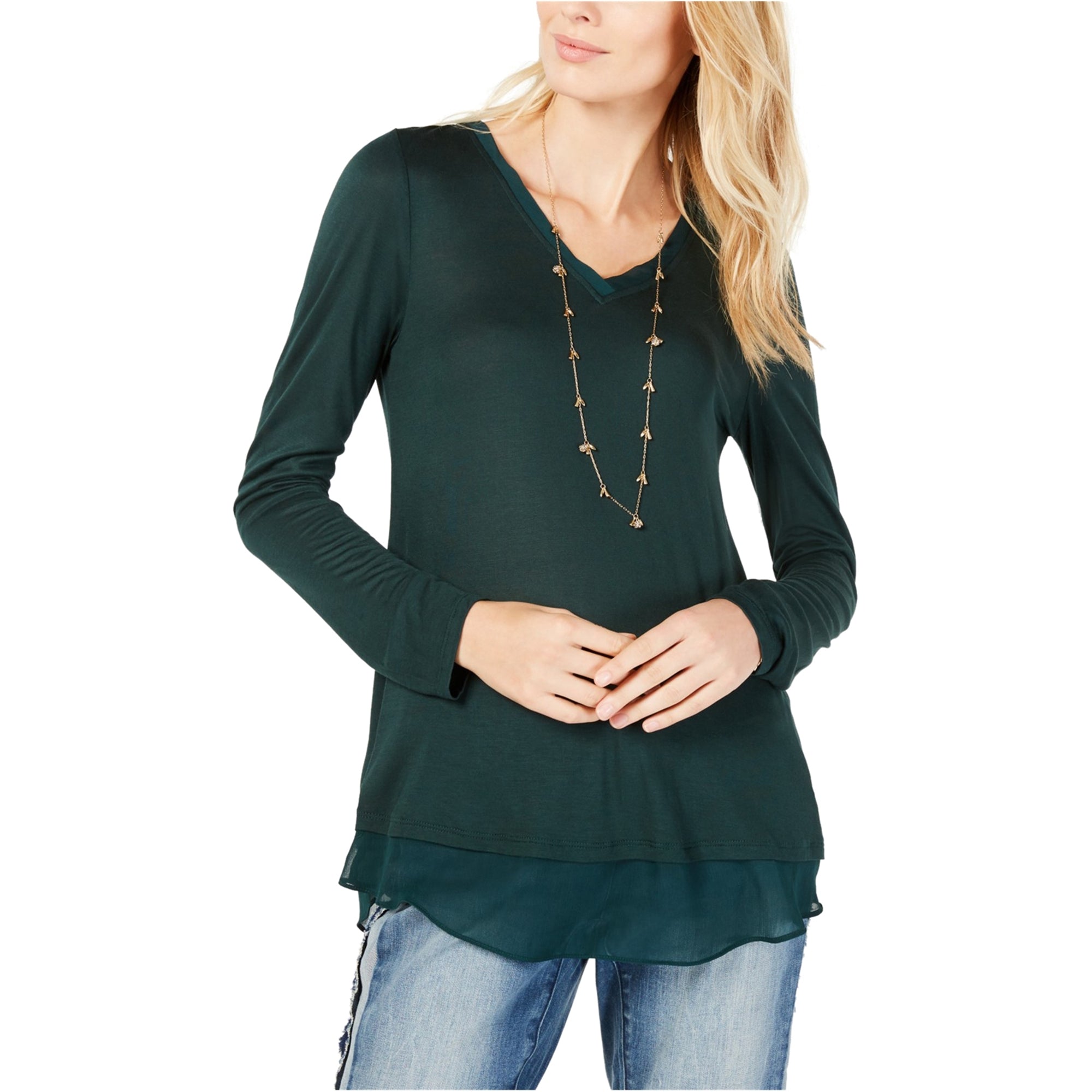 A camiseta de manga comprida da INC International Concepts é elegantemente atualizada com acabamento transparente| tecido na bainha.| Acabamento no quadril| Decote em V| Acabamento transparente| tecido na bainha|