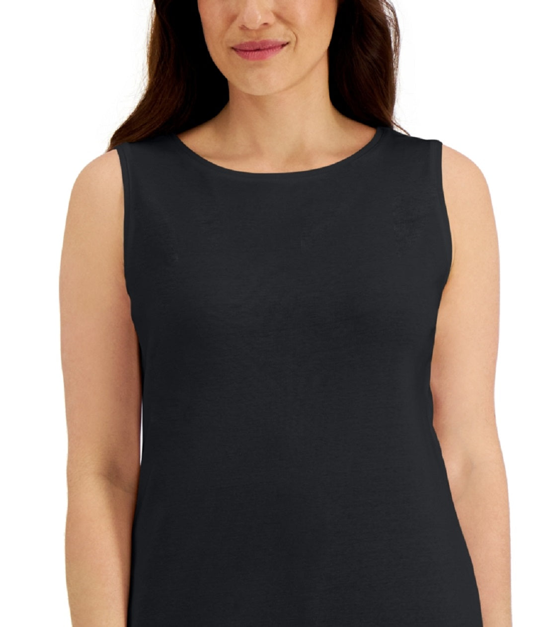 Karen Scott Blusa feminina de algodão com decote redondo, preta, tamanho XX-G