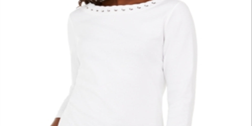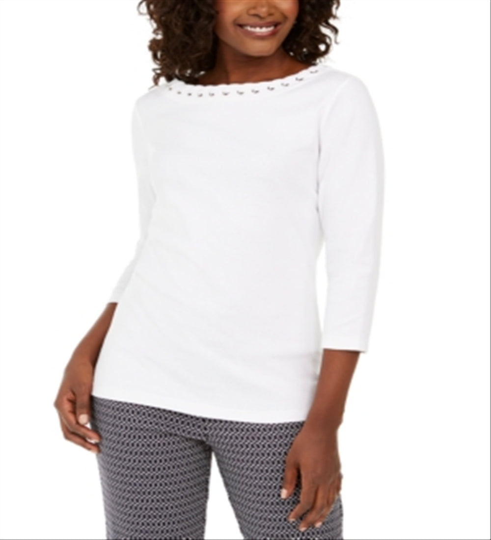 Decote canoa | Acabamento com ilhós | Mangas 3/4