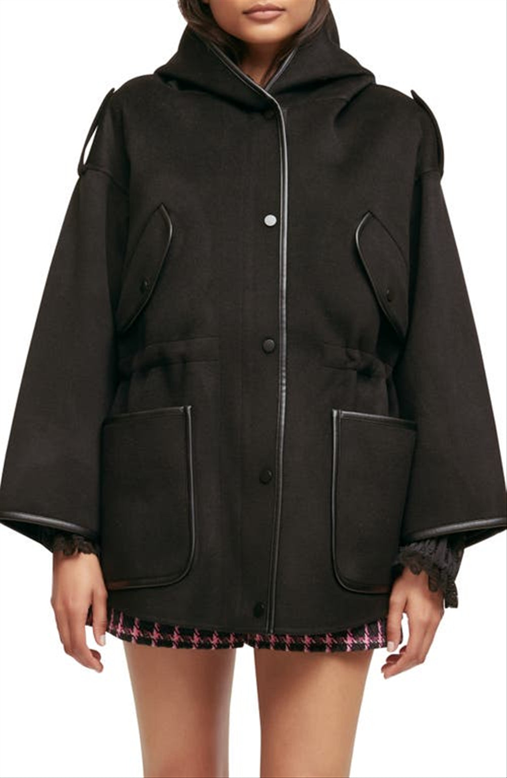 Material de mistura de lã | Design com capuz | Cor preta | Exclusivo Nordstrom | Tamanho 0 | Qualidade de construção premium | Aparência elegante | Leve | Ajuste confortável | Versátil para qualquer roupa | Durável para uso diário