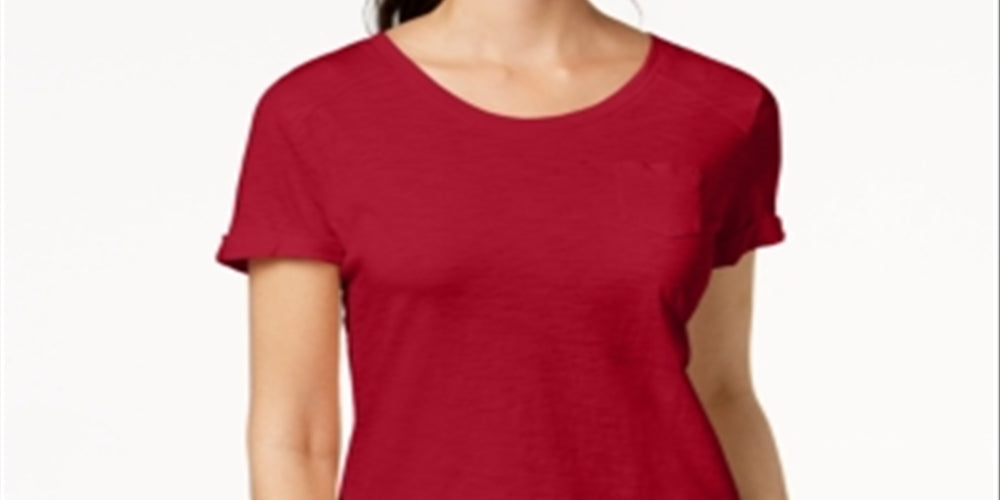 Camiseta feminina com decote em V e bolso, tamanho pequeno, vermelha, estilo & co