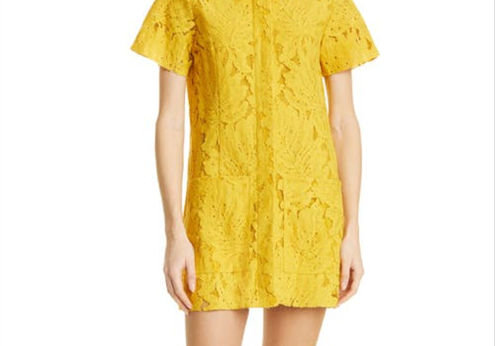 Material de mistura de algodão | Detalhes em renda | Vestido estilo camisa | Cor amarelo vibrante | Tamanho 6 | Desenhado por Ted Baker London | Disponível na Nordstrom | Casual e elegante