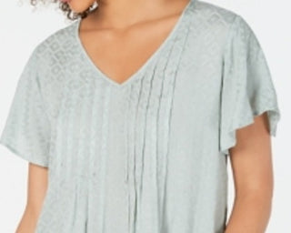 Blusa texturizada com mangas esvoaçantes Style & Co feminina, verde, tamanho pequeno