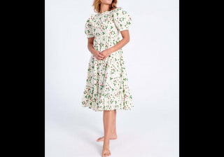 Vestido midi feminino Leota com manga comprida e caimento perfeito em gardênia gráfica (curva) branco