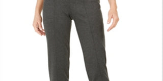 Calça feminina de malha ponte com acabamento em couro sintético JM Collection, cinza, tamanho pequeno