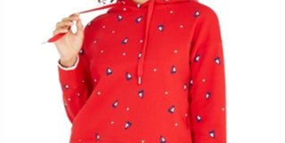 Tommy Hilfiger Moletom com capuz feminino com estampa de corações, vermelho, tamanho GG