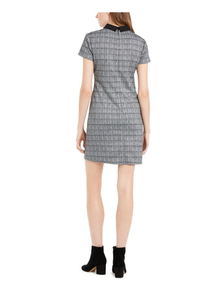 Vestido curto de festa feminino Maison Jules com zíper metálico e strass, manga curta e gola, preto, tamanho pequeno