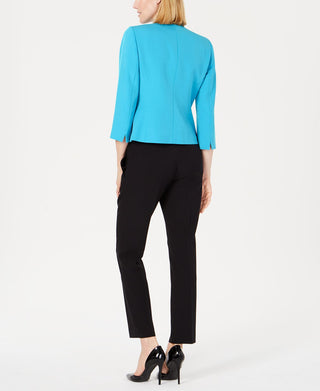 Le Suit Feminino Gola Xale Terno Azul Tamanho 2 Petite