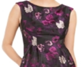 Vestido feminino Jessica Howard floral sem mangas, gola alta, acima do joelho, estilo flare, roxo, tamanho 4, pequeno
