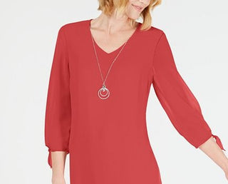Vestido feminino com mangas amarradas e colar, tamanho pequeno, vermelho, JM Collection