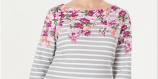 Karen Scott Blusa Feminina Listrada Floral Gola Canoa Azul Marinho Floral Tamanho Pequeno P