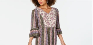 Vestido feminino estampado com manga sino estilo & co, verde, tamanho pequeno M