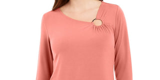 Túnica feminina assimétrica com anel JM Collection, laranja, tamanho médio