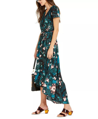 Vestido feminino estampado com manga sino estilo & co, verde, tamanho pequeno P