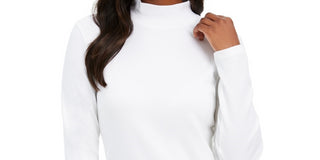 Blusa feminina Charter Club com gola alta canelada mesclada, tamanho médio, branca