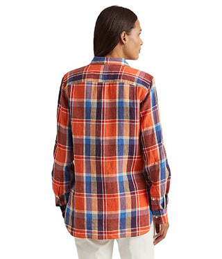 Camisa xadrez de linho feminina Ralph Lauren, tamanhos variados, média