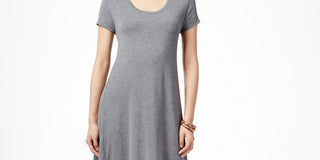 Vestido feminino estilo & co, manga curta, corte A, cinza, tamanho grande