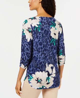 Top feminino com estampa de gola canoa Charter Club, preto, tamanho médio