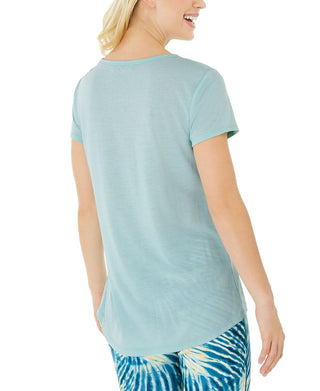Blusa feminina Maison Jules de manga curta e gola redonda, tamanho XS, azul