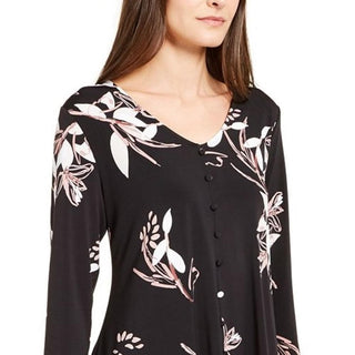 Blusa feminina Alfani com estampa de botões e acabamento em botões, preta, tamanho pequeno e pequeno