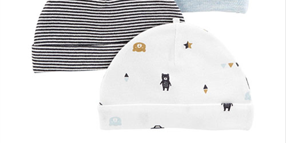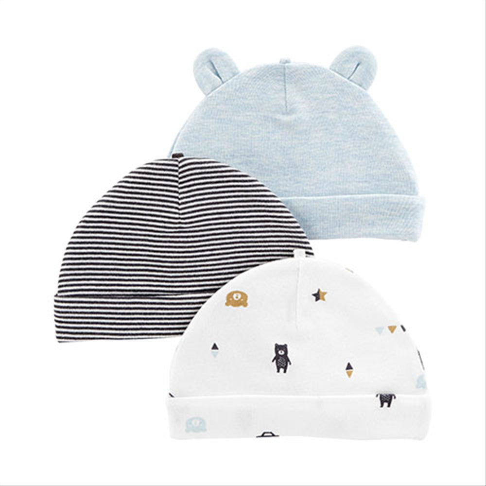 Carter's Boy's - Pacote com 3 protetores de orelha de urso, brancos, vários tamanhos, 0-3 meses