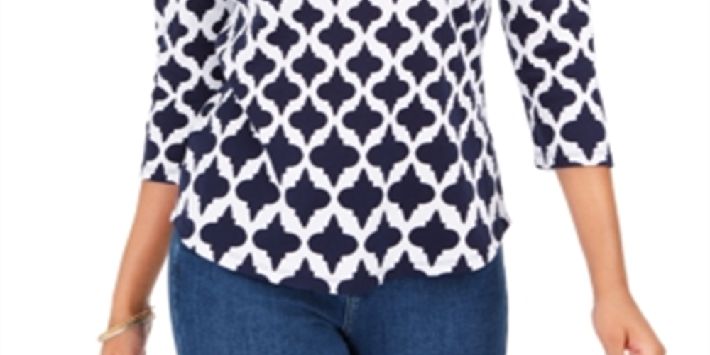 Atualize suas peças separadas favoritas com esta blusa da Charter Club | uma estampa divertida em algodão pima macio. | Ajustada; aprox. 26 de comprimento | Devido ao tamanho generoso | sugerimos um tamanho menor para um ajuste perfeito | Decote canoa