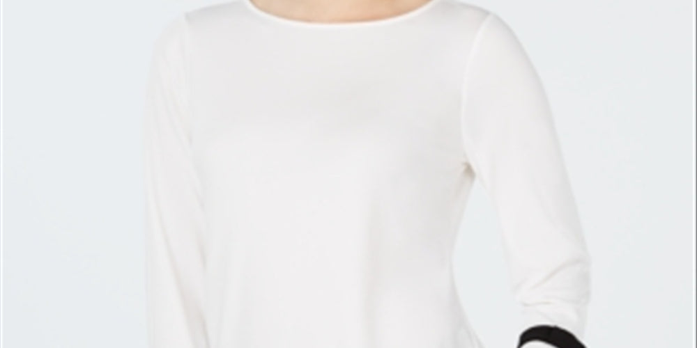 Blusa de crepe feminina Charter Club com manga amarrada, branca, tamanho pequeno
