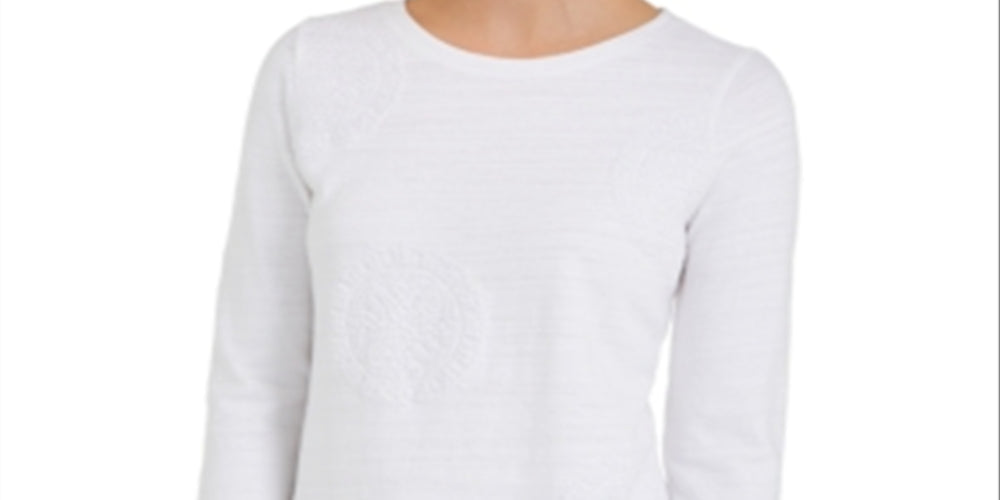 Camiseta estampada feminina Charter Club manga 3/4 branca tamanho X-S