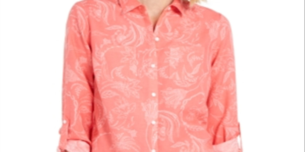Camisa feminina Charter Club Artful Paisleys estampada em mistura de linho vermelha tamanho pequeno