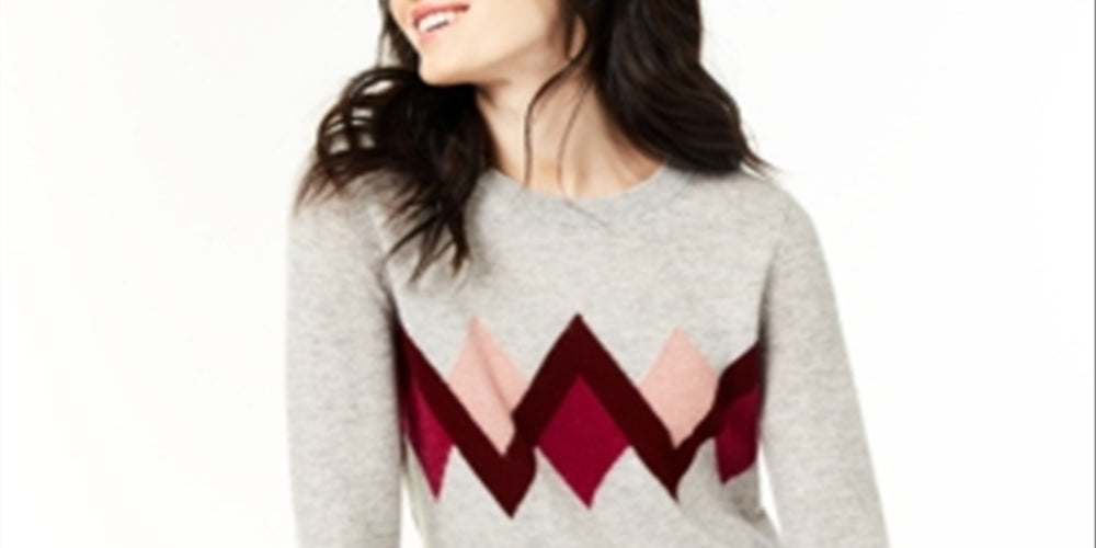 Suéter feminino de cashmere argyle Charter Club, prateado, tamanho GG