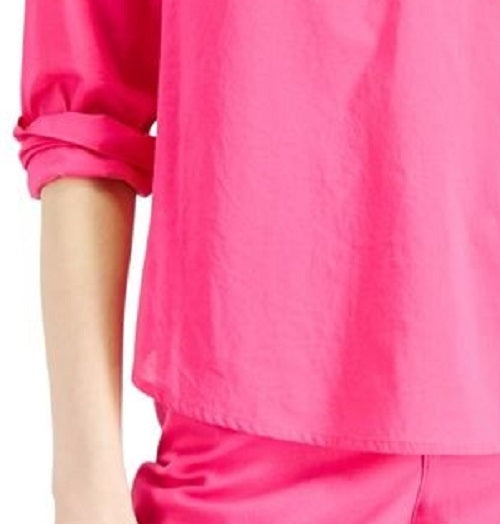 Blusa feminina Charter Club de algodão com gola rosa, tamanho pequeno médio