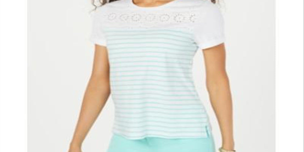 O bordado de ilhós é um elemento chique que floresce na frente deste top de algodão macio do Charter Club | listras e aberturas laterais são toques familiares em uma peça que está na moda