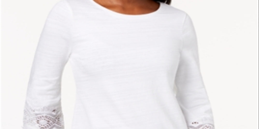 Top feminino Charter Club com acabamento em renda de algodão, branco, tamanho X-S