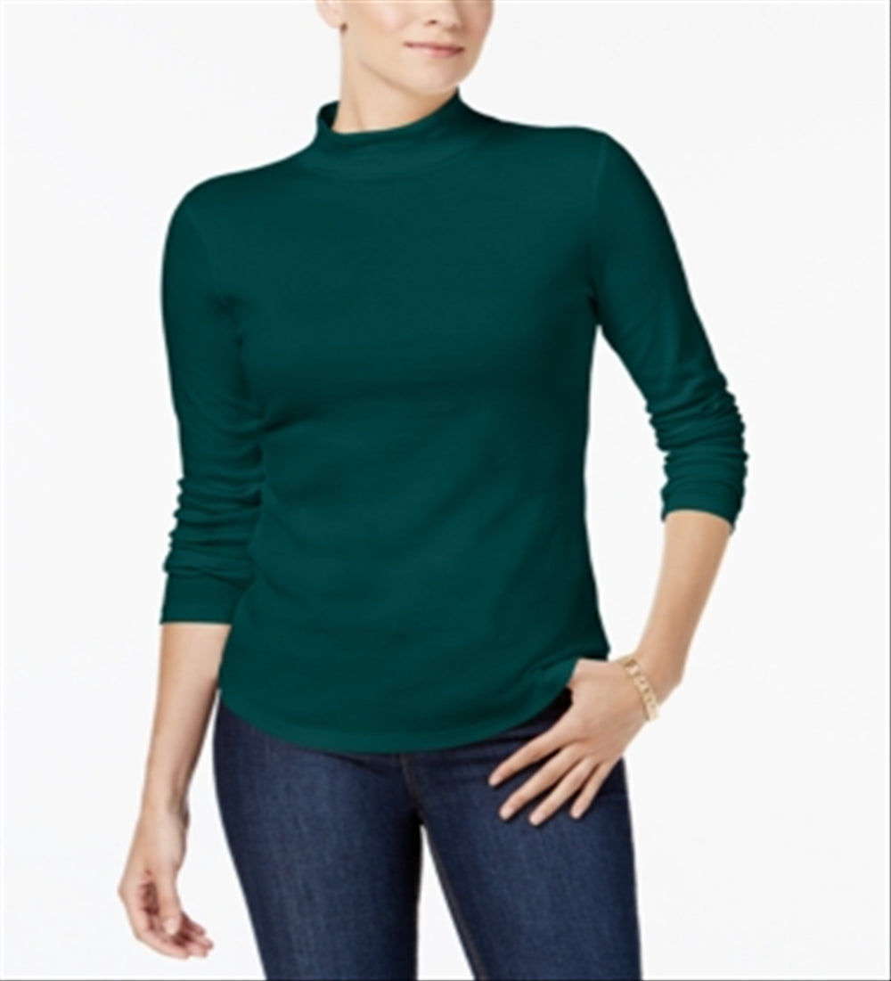 Camiseta feminina Charter Club de algodão com gola alta, verde, tamanho X-S