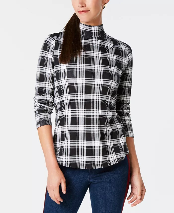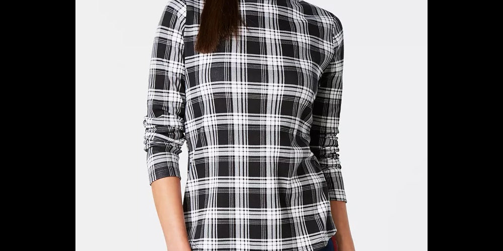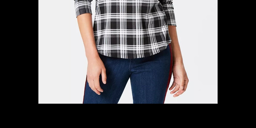 Camiseta feminina xadrez de algodão Charter Club, preta, tamanho extragrande