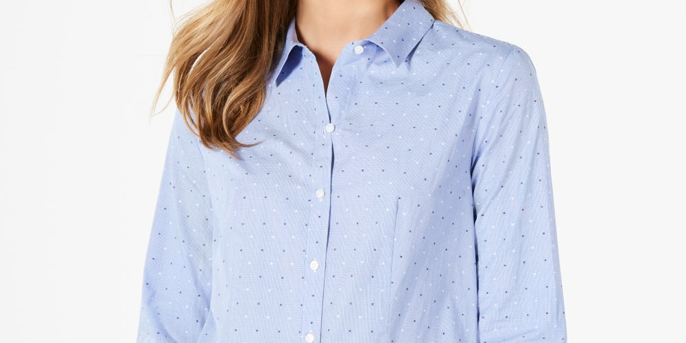Camiseta feminina Charter Club de algodão estampada com botões frontais, azul, tamanho 12