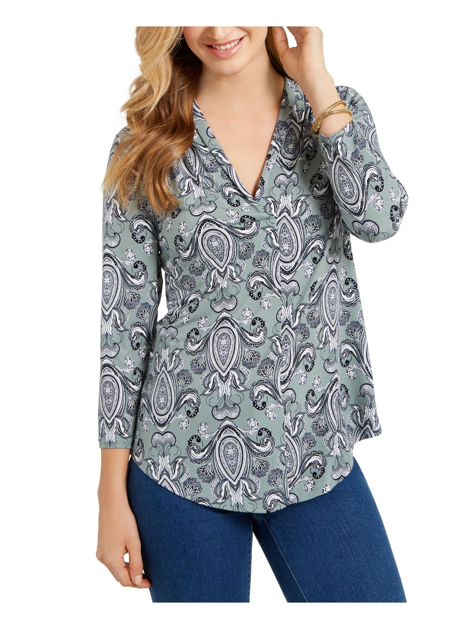 Charter Club Feminino Curvo Bainha Paisley Manga 3/4 Decote Sobrepeliz Vestir para o Trabalho Top Verde Tamanho P