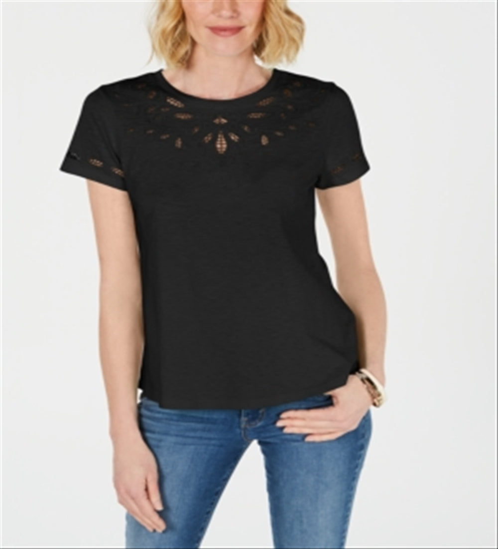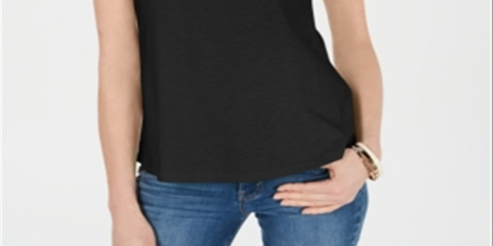 Camiseta feminina de algodão com recorte Charter Club, preta, tamanho extragrande