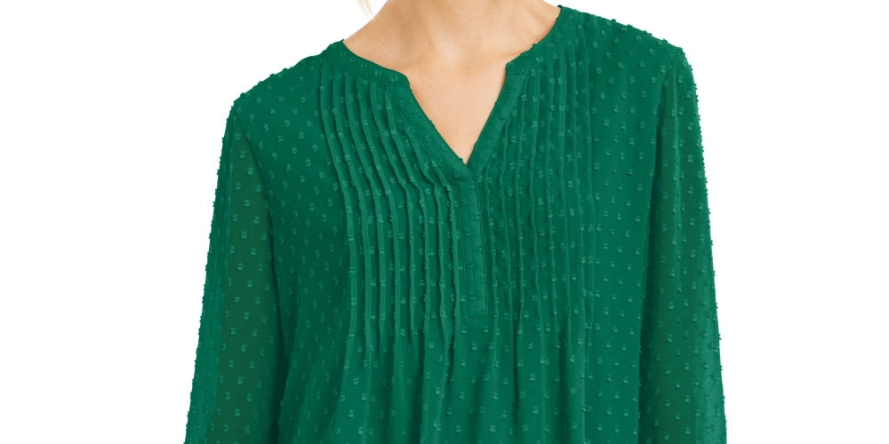 Charter Club Blusa Feminina com Babados Duplos e Textura Pintuck Verde Tamanho Médio