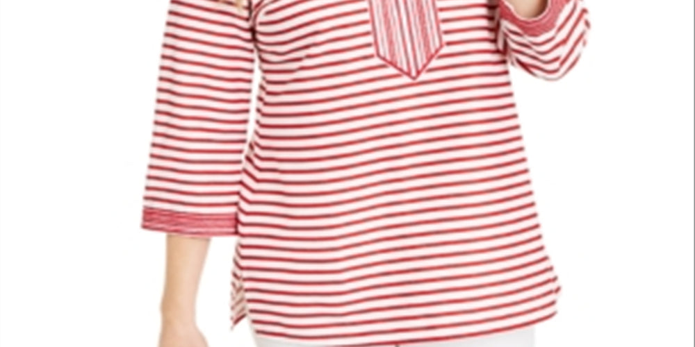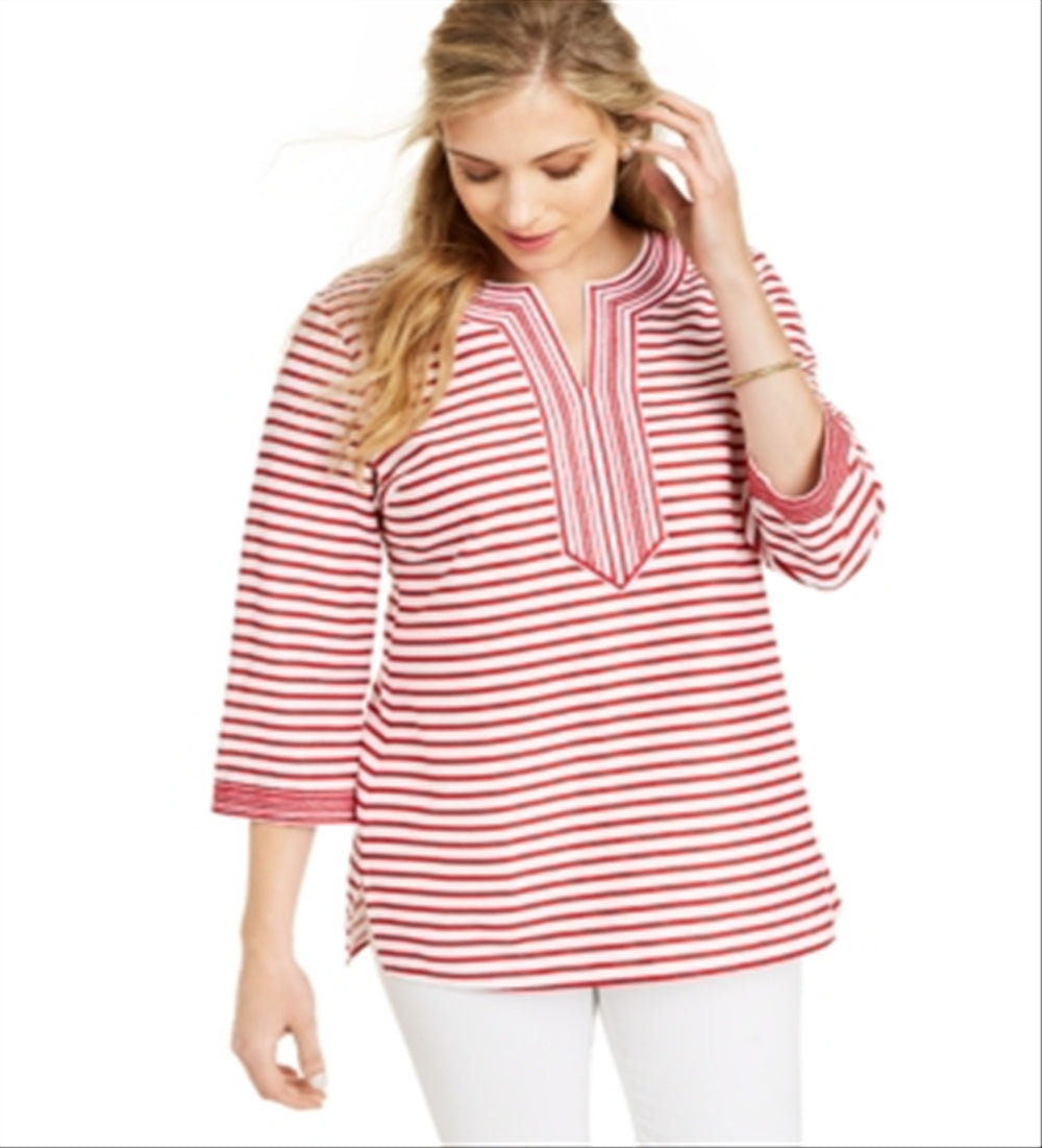 Charter Club|estilo; top|ocasião; casual|tamanho; l|material; mistura de linho|cor; vermelho|decote em V