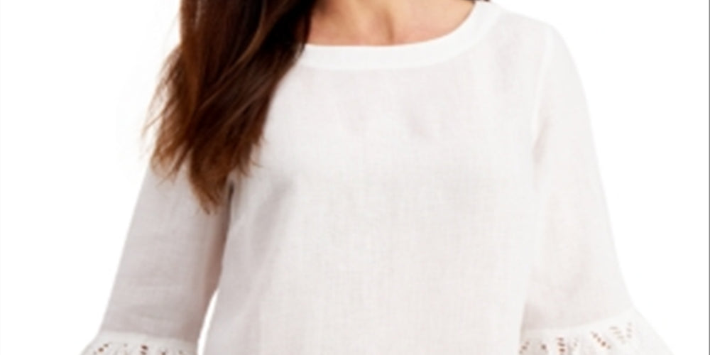 Charter Club Blusa feminina com manga sino e ilhós, branca, tamanho médio