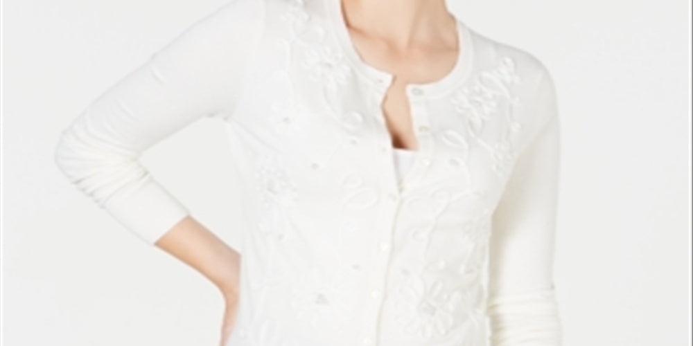 Cardigan feminino com apliques florais Charter Club, branco, tamanho 2XL